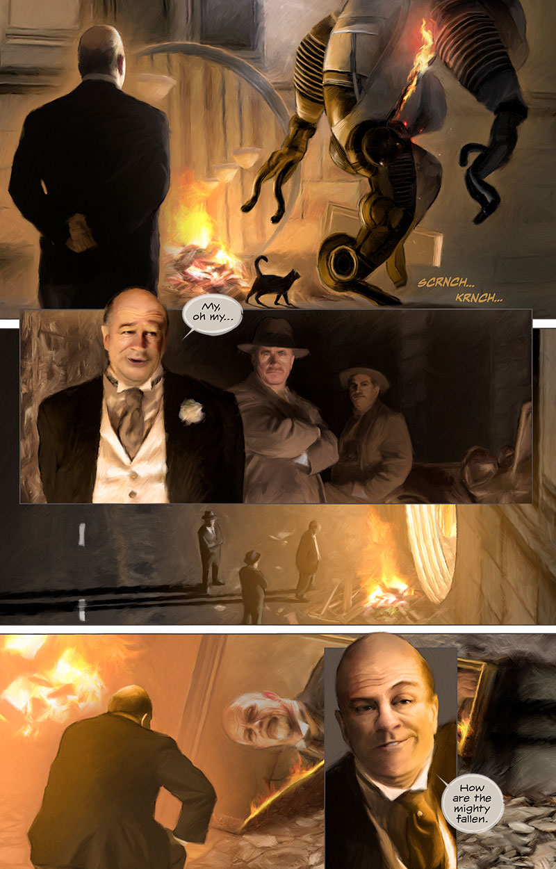 So there it is now, writ small up in panel two, a glimpse of my theoretical chrome and glass extravaganza barely seen peeking out from behind one of the toughs.