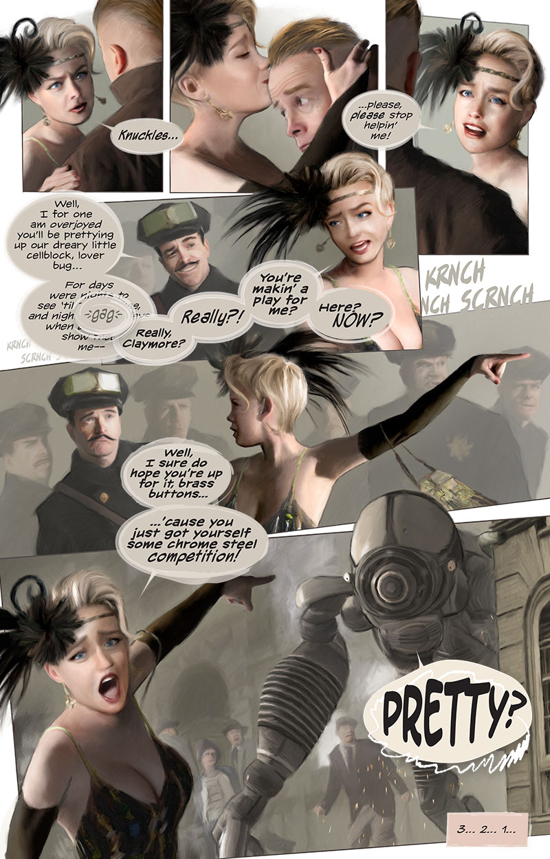 Speaking of which, a few years ago I learned a great lesson while on a crackerjack creative team under an eagle-eyed editor who once pointed out that the freckles I’d drawn on a character’s face didn’t match my earlier drawings. She was spot-on right, and I felt like a tool for missing it - which is why I know that there are exactly eleven concentric rings on the X3 ‘bot’s arms and legs, as well as thirteen concentric rings and a total of forty radiating lines on its death ray projector, and a whole lot more besides.