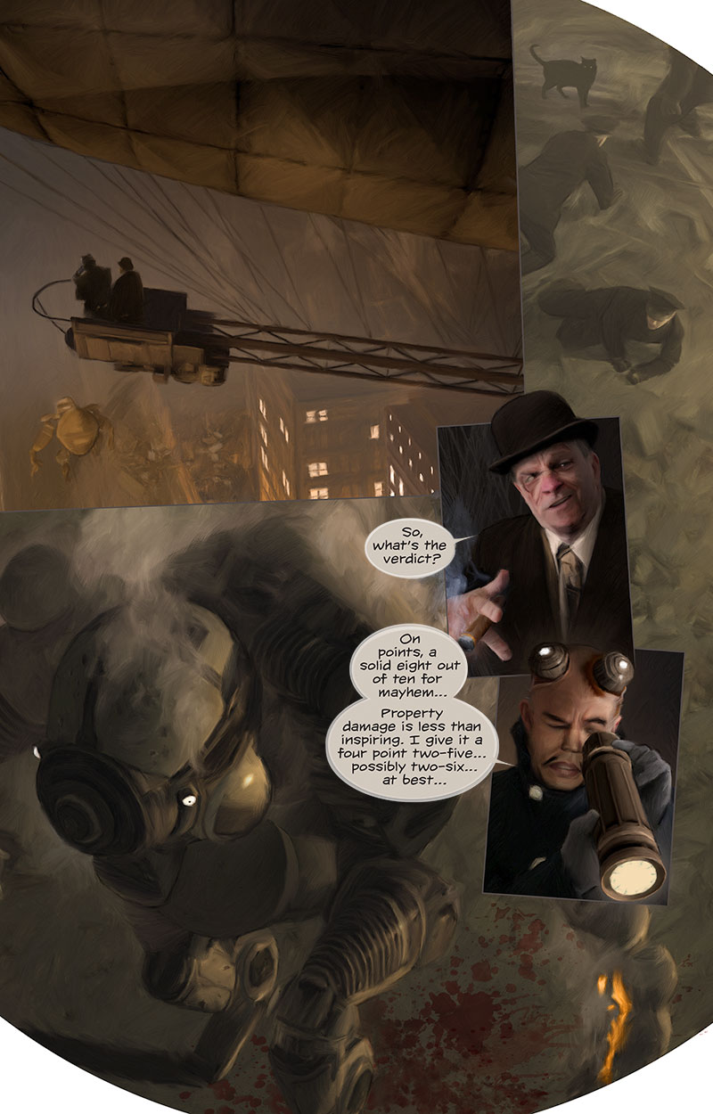 07/10/2017So you can catch up, these two blimp-borne blackguards first showed up back on page 97. Another A-lister returns here too, last spotted on pages 53 thru 55.Jos. |
