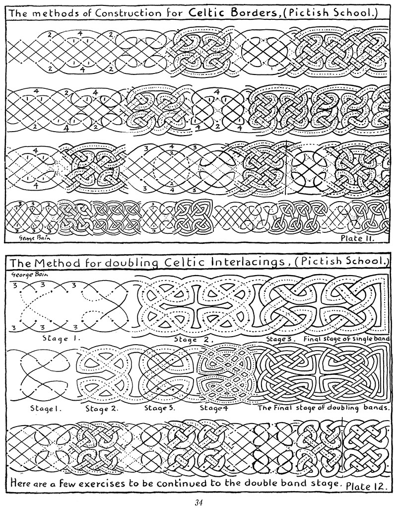 This time, Celtic Art, The Methods of Construction by George Bain. Published in 1951 and still in print by Dover, it’s the first meticulous, one might even say compulsive, lesson plan to creating knotwork, spirals, key patterns, lettering, animals, plants and human depictions in one of the great living ethnic art forms. There are a hundred and fifty-some hand-drawn pages and every last one is illustrated.